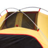 Два входа во внутреннюю палатку закрываются как тканевым пологом, так и москитной сеткой для вентиляции в жаркую погоду. Чтобы в критический момент не перепутать молнии выхода и москитной сетки, они имеют различный цвет: красная молния открывает выход, а черная — москитную сетку. Молнии крупные, 8-го размера. На замках молнии удобные петельки оранжевого и черного цвета. Открытые пологи входа можно свернуть и зафиксировать баклей. При полностью закрытом входе внутренняя палатка надежно защищает от пауков, комаров, змей и даже муравьев. Старайтесь всегда держать внутреннюю палатку закрытой.