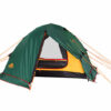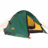 Тент палатки выполнен из прочной, устойчивой к истиранию и разрушению ультрафиолетомткани Polyester 190T PU с многослойным полиуретановым покрытием c внутренней стороны. Данное покрытие гарантирует водонепроницаемость более 10 000 мм водяного столба (давление воды при обычном дожде не превышает 1500-2000 мм) для новой палатки и не менее 4000 мм для палатки, используемой в течение нескольких лет. Для увеличения водоотталкивающих свойств внешняя сторона тента обработана специальной пропиткой Water Repellent (водоотталкивающая пропитка). Также ткань пропитана составом, задерживающим распространения огня (в месте падения искры ткань может оплавиться, но не произойдет общее возгорание палатки, что очень важно с точки зрения безопасности).